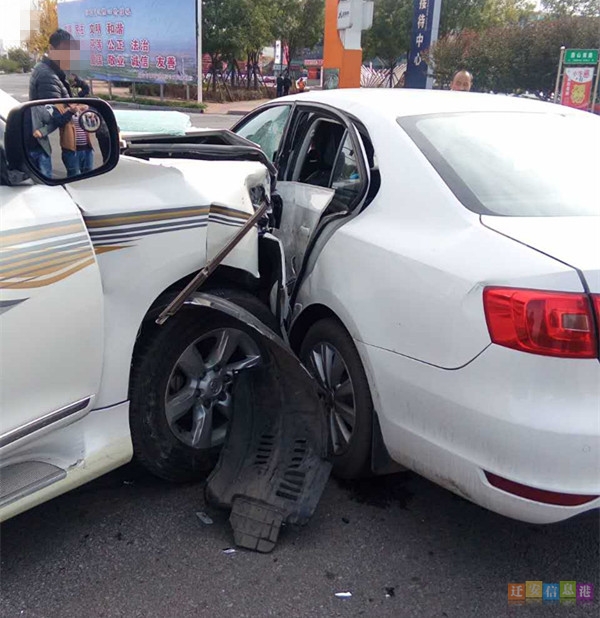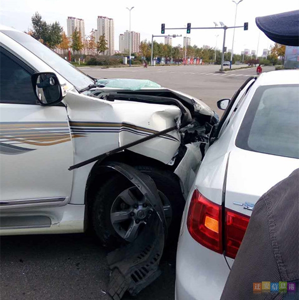 经了解得知,车祸发生在燕山南路天洋广场路口,一辆大众车在直行车道突然左拐与一辆自北向南行驶的霸道车相撞,致使两车均有不同程度的损坏。其中霸道车头损毁,大众车左后门受损严重。据市民讲述,两车内均有孩子,突如其来发生的事故,孩子们都被吓哭。