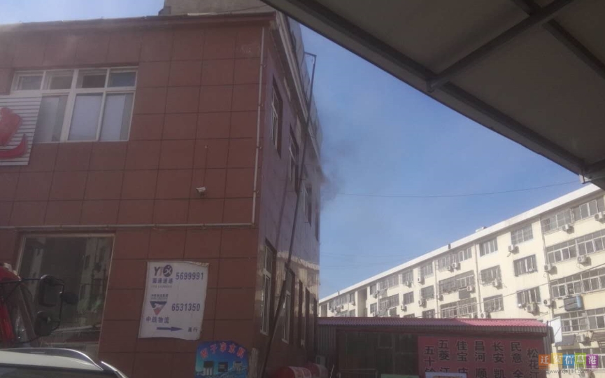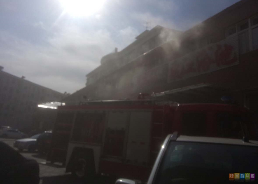 惠隆大厦后院一洗浴中心二楼发生火灾 浓烟蔓延到附近商家