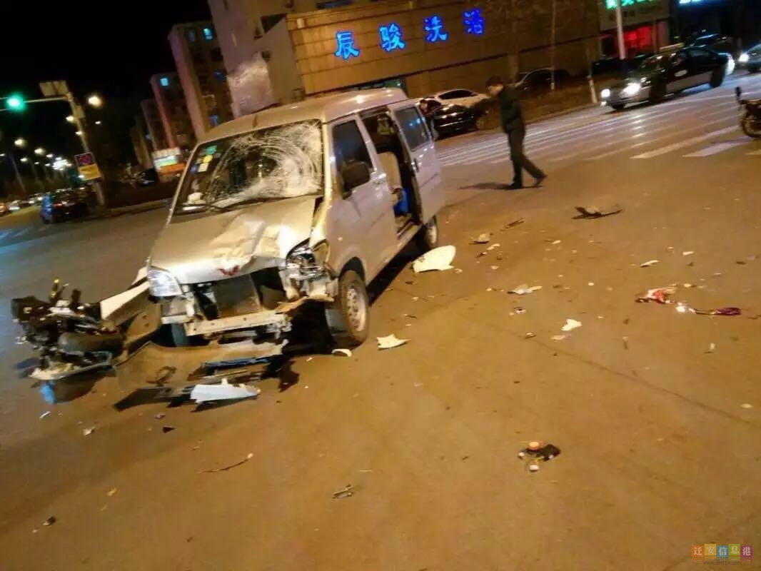 迁安信息港消息:今日,市民赵先生给本平台发来消息称,昨天晚上在城关分局东侧路口发生了一起严重车祸,面包车和摩托车相撞,摩托车主受伤严重。