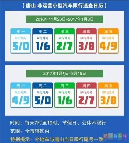 迁安市自2016年11月23日至2017年3月15日这样限行!