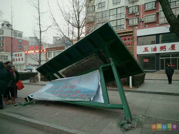 在此,希望新的候车亭尽早“上岗”,让公交站点恢复以往的风貌;除此,提醒广大市民朋友,冬季多风,在室外广告牌下经过或在公交站点等车时,要多多留意,以免发生意外。
