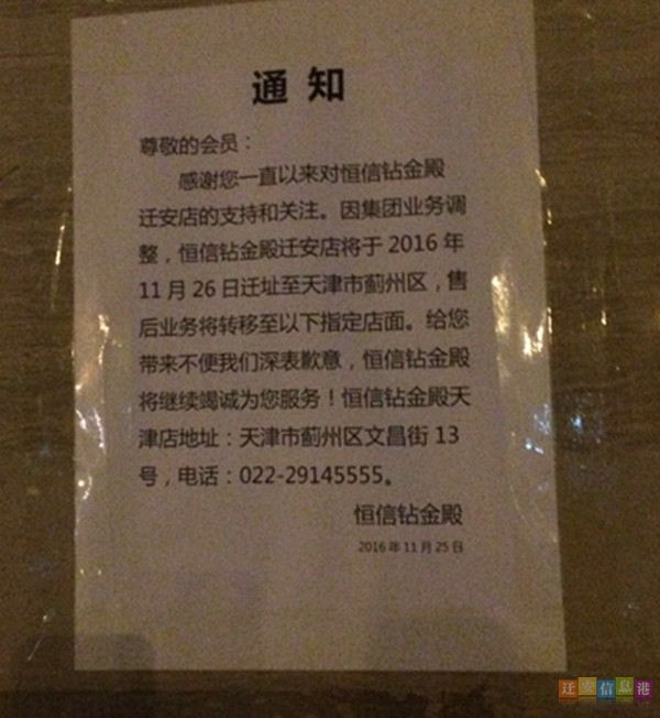 恒信钻金殿迁安店悄然撤离 昔日辉煌不再