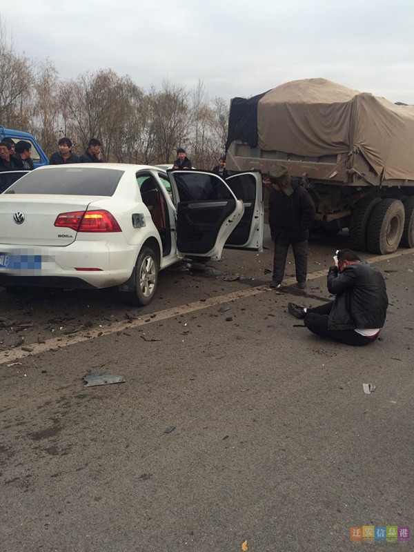 下午两点半左右,刘先生给本平台发来信息称,迁擂收费站北侧发生车祸。在刘先生提供的照片中我们看到,一辆白色小轿车追尾大车,白色小轿车车身受损严重。刘先生称,小轿车上共有四人,事故发生后,司机被卡在驾驶室,在现场人员的帮助下,被解救出驾驶室,刘先生称,车上四人均不同程度受伤。目前,事故具体起因和人员伤亡情况尚不清楚。