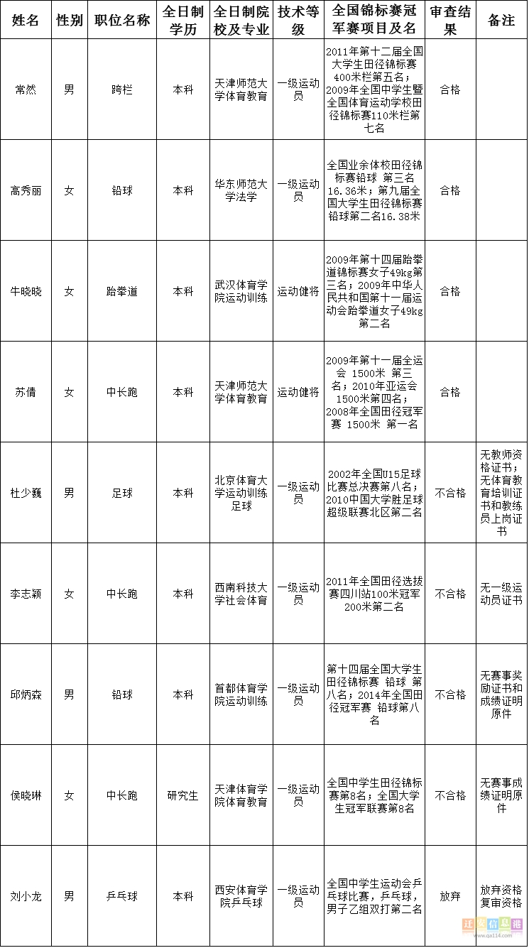 体育运动学校公开招聘教练员资格复审情况已出炉,大家速速来围观吧!