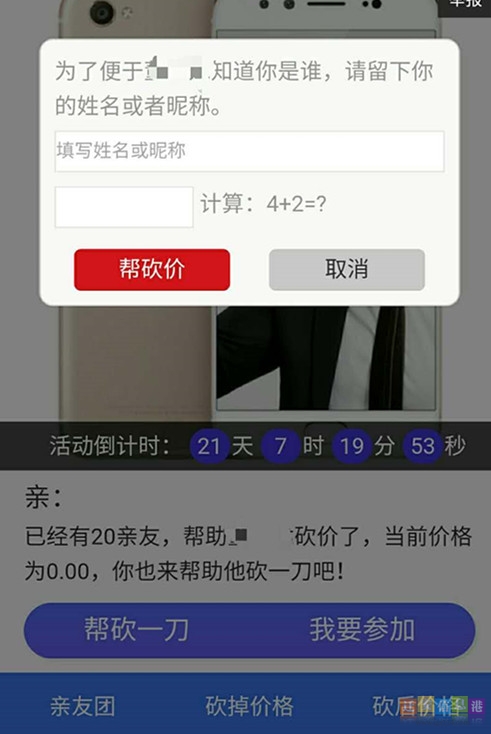 微信砍价到“0”元免费领取某品牌手机是骗局