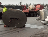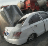 惊险!太平庄一大货车飞出6吨铝卷砸中小轿车