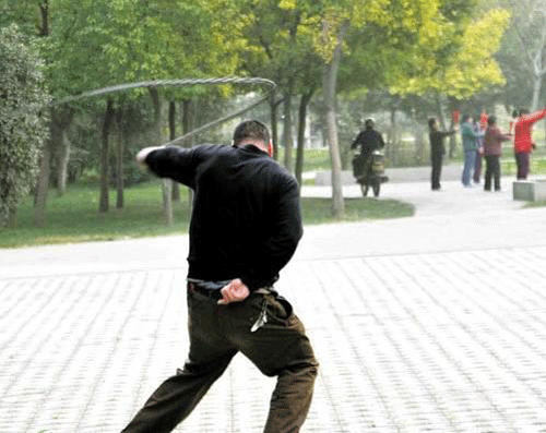公园里甩鞭子的大爷 周围居民喊您手下留情