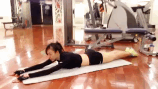 1、平趴在瑜伽垫上,一侧手臂和另一侧腿部伸直,向上抬,然后另一侧重复此动作。