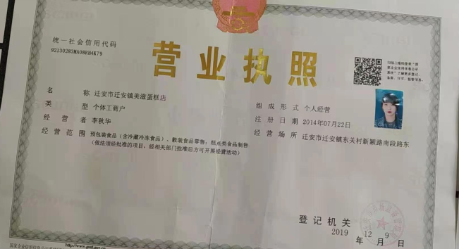 > 迁安市迁安镇美滋蛋糕店 > 证书资质